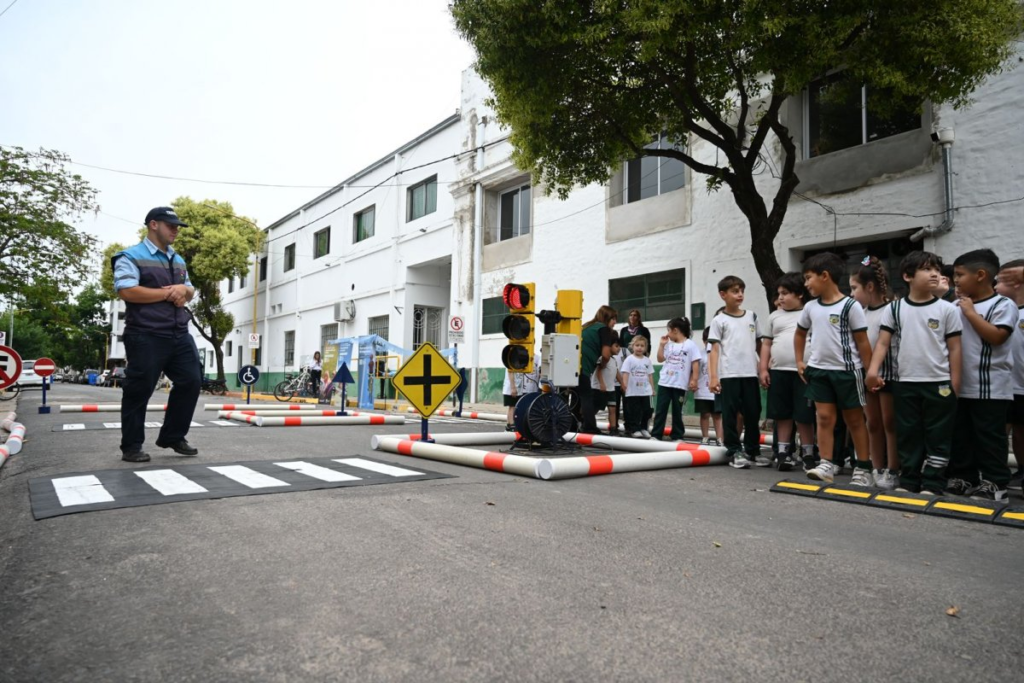 La propuesta se desarrolló sobre calle Colombo, frente al establecimiento educativo, y estuvo destinada a alumnos de 1º grado y a niños de la sala de cinco años del nivel inicial, quienes participaron de una charla educativa para aprender sobre las normas de tránsito, las señales viales y el uso seguro de la bicicleta.