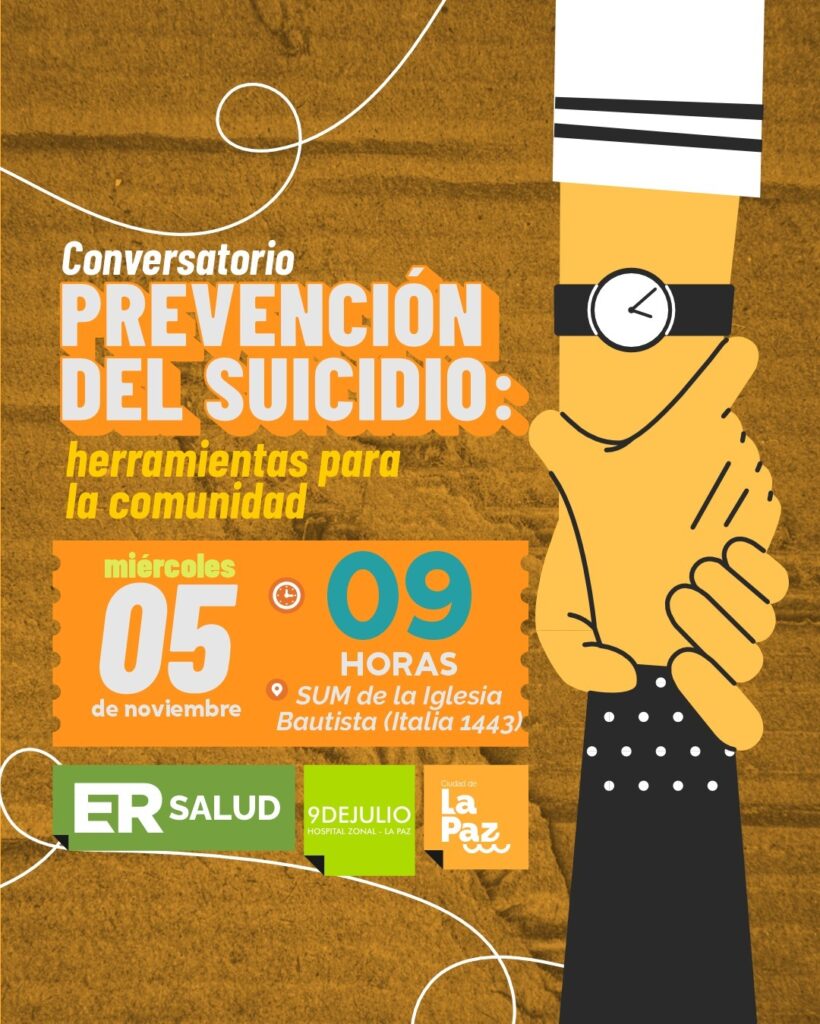 Este miércoles 5 de noviembre, en el SUM de la Iglesia Bautista (Italia 1443), se llevarán a cabo dos conversatorios orientados a fortalecer las herramientas comunitarias y profesionales para la prevención del suicidio.